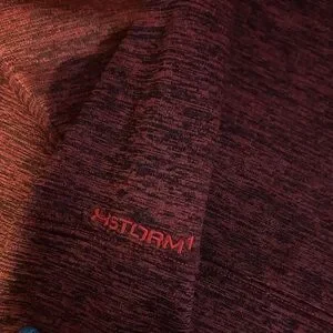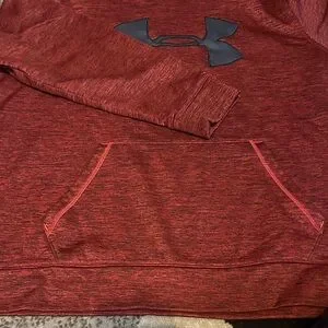 Comfortable red hoodie featuring a prominent black logo. Ideal for everyday wear.
