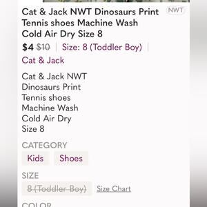 Cat & Jack NWT Dinosaurs Print Tennis Shoes Green and Beige Size 5 Toddler