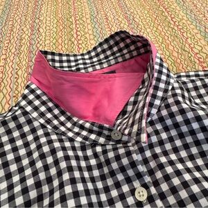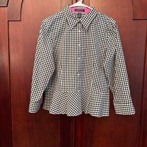 Lauren Ralph Lauren Black Gingham Flip Cuff Peplum Hem Button Up Shirt Size 12
