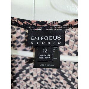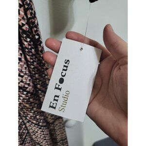 EN FOCUS STUDIO Women's SZ 12 Faux Wrap Dress 3/4 Sleeve NWT Geometric Print