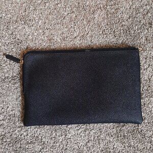 Coach Story Patch Black Leather Large Pouch. Cute zipper pouch with gold lettering. Lined interior. In very good preowned condition. Perfect for cosmetics, sunglasses, and anything you can think of!