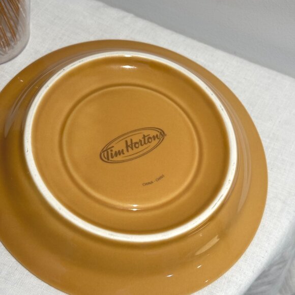 This bundle includes a Japanese Teavana matcha set (bowl and whisk) paired with a Tim Hortons plate that matches beautifully in retro style and color.