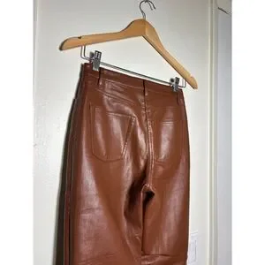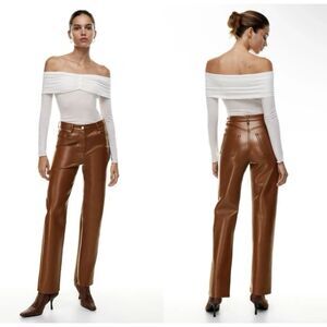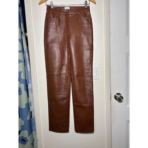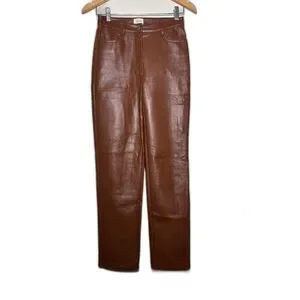 Aritzia Wilfred Faux Leather Melina Pants Vegan Cognac Brown Straight Leg Size 0