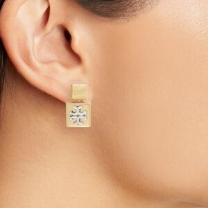 Tory Burch Block-T set: bracelet, earrings and ring (size 7). Features gold and silver tones. Perfect for any occasion
