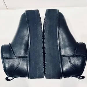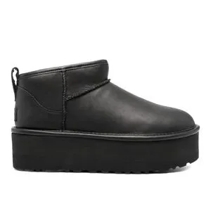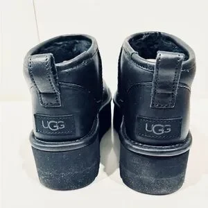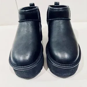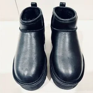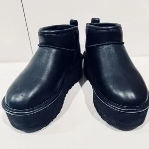 UGG WOMEN'S ULTRA MINI PLATFORM LEATHER SHEARLING LINED ANKLE BOOTS BLACK size 6