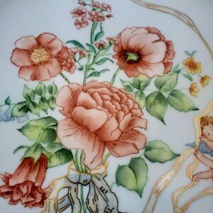 Vintage Hand Painted Porcelain Platter with Flowers and Angels 11.5 Inch Round