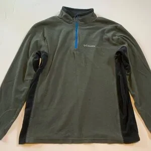Men’s Columbia size large quarter zip fleece. Black detailing on gray body, with blue zipper. Very good pre-love condition.