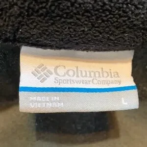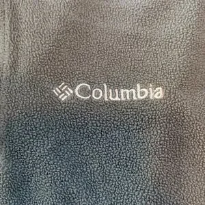 Columbia fleece jacket in gray and black. Features a bright blue zipper.