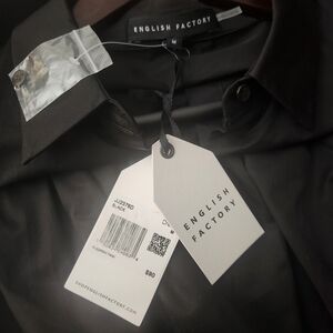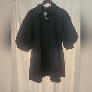 NWT Chic black dress with elegant design. Ideal for versatile styling. English Factory Elegant Black Dress, Elbow Length Puffed Sleeves - Size M. Perfect relaxing happy hour, or weekend date dress. Pit to pit approx. 19.5".