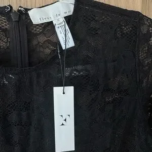 Chic black lace catsuit. Long sleeves with intricate floral patterns. Perfect for a stylish, intimate look.