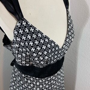🌹New List🌹NWT Vintage 1990s AB Studio Black & White Geometric Pattern Midi Dress