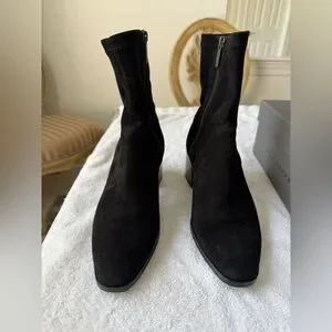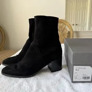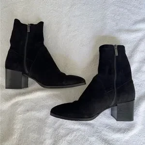 Aquatalia Tia Weatherproof Stacked Heel Stretch Black Suede Booties Ankle Boots