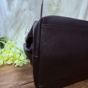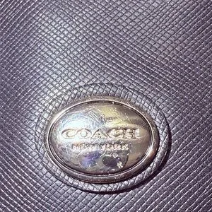 Elegant black tote by Coach. Features chain straps. Perfect for chic style.