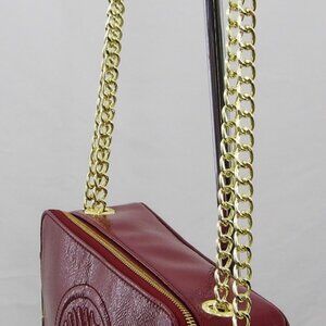 This versatile side purse pairs effortlessly with workwear, casual outfits, or evening looks. The Bordeaux hue and polished gold accents give it a rich, timeless appeal.
