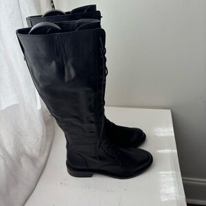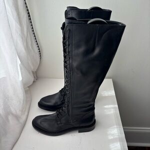 Sam Edelman Women's Nance Tall Lace Up Leather Boots Black US 7 M