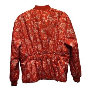 Scotch & Soda Red and White Botanical Print Quilted Bomber Jacket - Size S