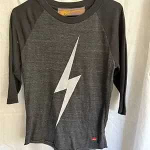 Aviator Nation Black Lightning Bolt Jersey Size Small Cool long sleeve tee with a striking lightning bolt. Soft fabric for all-day comfort.