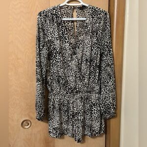 Guess Factory Leopard Print Long Sleeve Romper Shorts