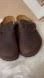 Comfortable brown clogs with adjustable strap. Classic Birkenstock design.