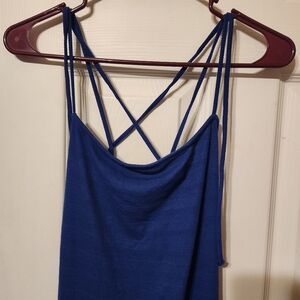 Vibrant royal blue midi dress. Adjustable straps that tie in the back.
