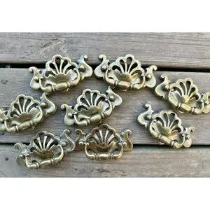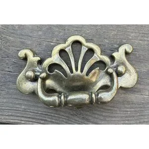 8 vintage Dresser pull knob 1992 B1254 ornate brass Handle Chippendale Style 4”
