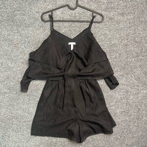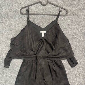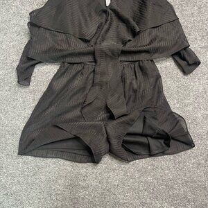 Leith Womens Romper Black Geometric Stripe Cold Shoulder V Neck Tie Front S