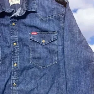 Stylish dark blue shirt with button-down design. Features chest pockets. Ideal for casual wear.