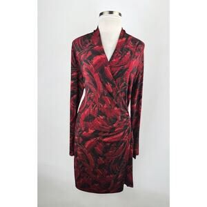 Norma Kamali Faux Wrap Dress Red & Black Feather Print Size XXL 2XL Office Chic