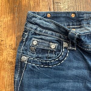 🖤 Details: Y2K distressed women’s bootcut jeans. Embellished silver pockets and white thick stitching for that iconic miss me look