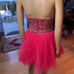 Stunning fuchsia pink Rare Sherri Hill strapless dress with intricate beading and glittering AB Stones Perfect for special occasions homecoming, prom, pageant