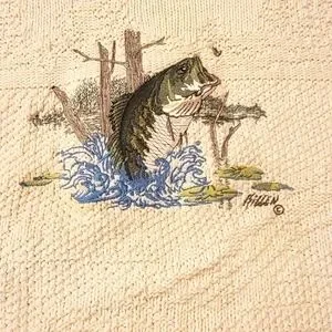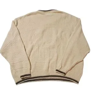 VTG Sweater Mens Cream 3D Embroidered Bass Retro Made in USA