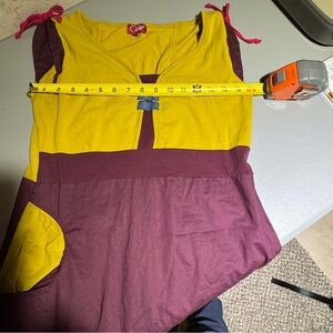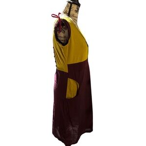 Vintage Y2K Coline Burgundy & Chartreuse Colorblock Mini Dress