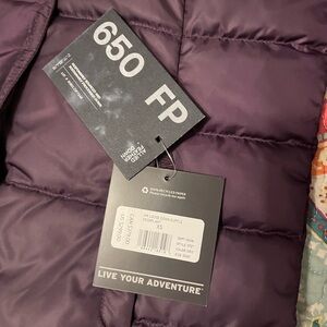Stay warm and stylish with this elegant purple puffer coat. Featuring a cozy faux fur hood, it's perfect for chilly days.