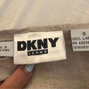 DKNY wide leg beige linen pants, size 6. Tie knot in front