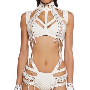 NWT Dolls Kill Rude Awakening Lace Up Burning Man Top Large