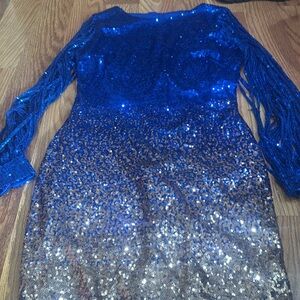 Stunning Blue and Brown Sequin Midi Dress