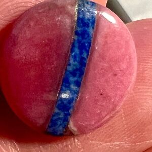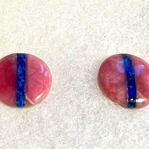 Vintage Pink Blue Earring w inlay lapis lazuli & pink jasper round gemstone bead