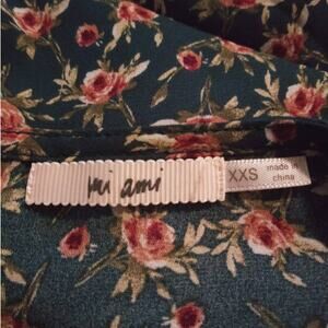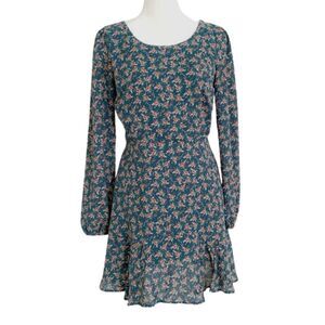 Francesca's Mi Ami Green & Pink Floral Print Long Sleeve Mini Dress Sz XXS