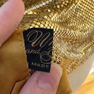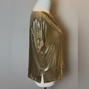Golden metal mesh cowl drape shirt by Whiting & Davis.