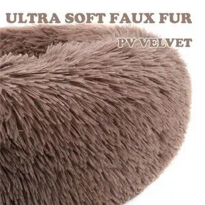 Donut round design puppy bed. 6 size options, the pet beds are suitable for small, medium and large dogs and cats. Made of faux shag fur, and filling with quality airloft fibers, the self-warming luxury dog bed will bring a superior comfort for your pets. The raised rim creates a sense of security and provides head and neck support. Dogs and cats will have full, restful sleep for improved behavior and better health.Very cute lovely design for your pet. Ideal for pets to curl up or sprawl, provide them warm with a sense of security.
