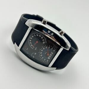 The unique blue binary LED dot matrix display shows the date and time in a cool, futuristic way. Perfect for everyday wear or special occasions, this watch is a must-have for any modern man.