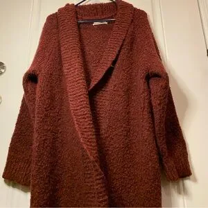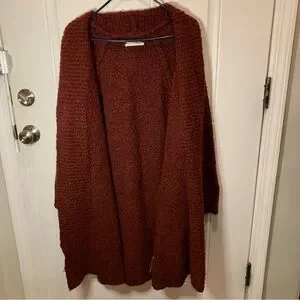 Anthropologie Lilla Cardigan Maroon Red Chunky Knit Sweater Cardigan Cozy Long