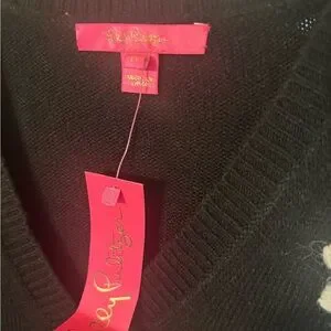 Lilly Pulitzer Black V-Neck Sweater with Daisy Embroidery