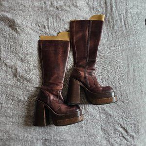 RARE Vintage SONAX Stacked Platform Chunky Boots from the 90s, Brown, US10