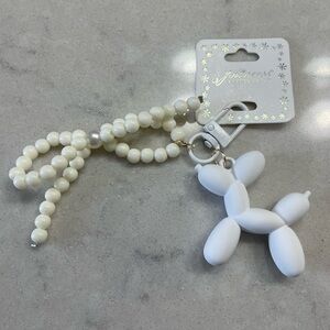 Balloon White Dog Charm/Zipper Pull with Cream Beaded Bow NEW
