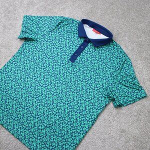 Redvanly Polo Shirt Mens XL Green Geometric Polyester Stretch S/S Pullover
