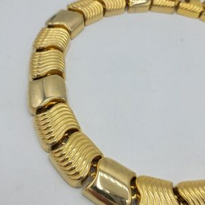 vintage 70s necklace chunky collar ribbed link runway glam Studio 54 cocktail party evening retro statement glossy gold tone bold chain womens jewelry