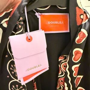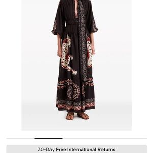 LA DoubleJ Black and Pink Resort Gown with Bishop Sleeves - goop