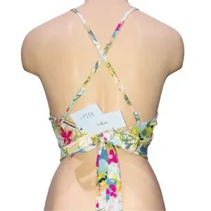 AAKAA Tropical Floral Print Halter Crop Top Cotton Anthro Boho Preppy Sexy Large