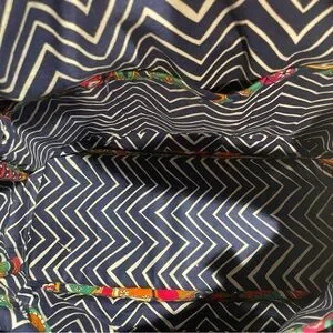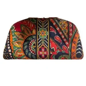 Vibrant purse and pouch set with intricate patterns. Features a mix of orange, green, and navy colors.